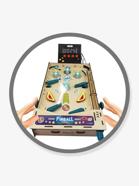 Avec le tournevis inclus, votre enfant assemble les éléments pour construire son flipper. Il branche les composants avec les connecteurs sans soudure : bumpers, diodes lumineuses et tableau des scores. Il peut même personnaliser son flipper avec les autocollants.