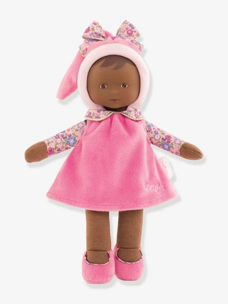 Mon doudou Miss et moi, c’est une grande histoire. Quand je l’ai vue pour la première fois, j’ai tout de suite aimé ses belles couleurs. J’ai d’ailleurs immédiatement voulu la serrer tout contre moi et j’ai découvert sa grande douceur ! Elle se glisse partout avec sa petite taille (25 cm). Je peux la prendre facilement par sa queue de cheval, ses bras, ses jambes, ses pieds et même sa robe. Elle est tellement légère ! Son visage réaliste en vinyle me rassure : si je suis triste ou que j’ai un peu peur quand mes parents ne sont pas là, il me suffit de la regarder pour me sentir mieux. Sa délicate senteur de vanille vient agréablement m’envelopper quand j’ai besoin d’être réconforté(e). Ma Miss et moi, on est inséparables. Car même si je l’oublie quelque part, on me la rendra : elle possède une étiquette pour écrire mon prénom ou le numéro de téléphone de mes parents.