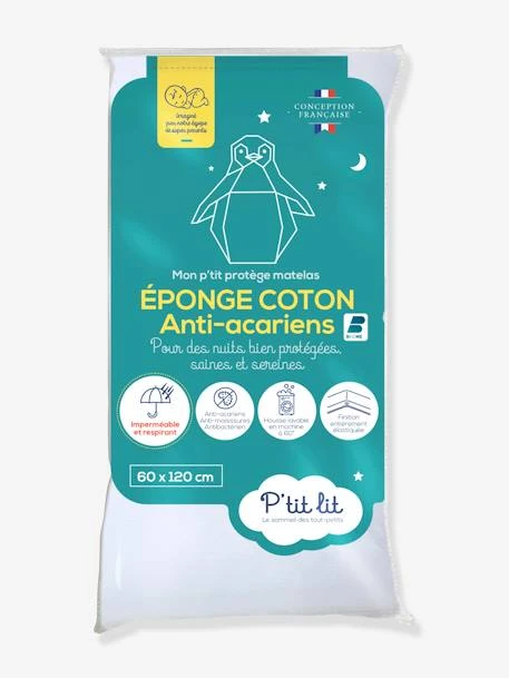 Protège matelas Imperméable éponge anti-acariens Bi Ome 60×120 cms P’TIT LIT