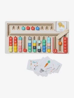 Un poster de la taille du puzzle sert de modèle à l’enfant.